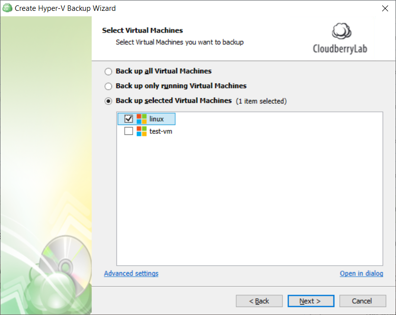 Select virtual machines to back up.