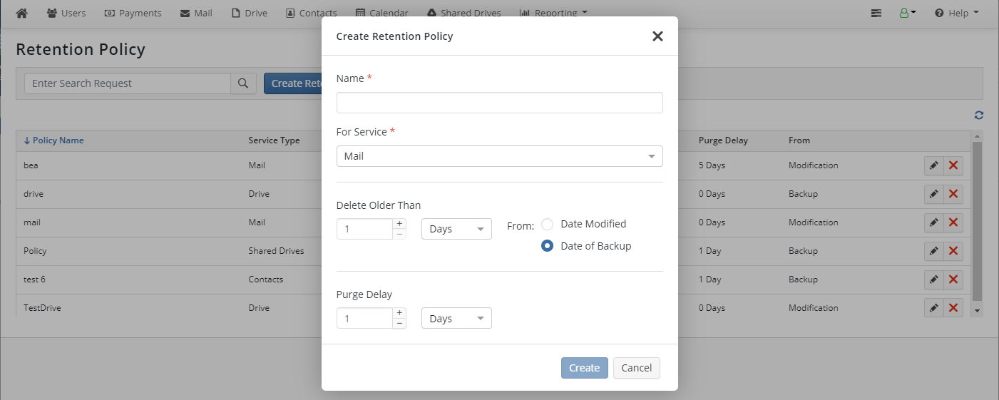 Purge Delay. This option is an additional safety lock for your backup strategy. With this option enabled, the purging process is delayed for a specified period. Once you are done with the retention policy parameters, click Create.