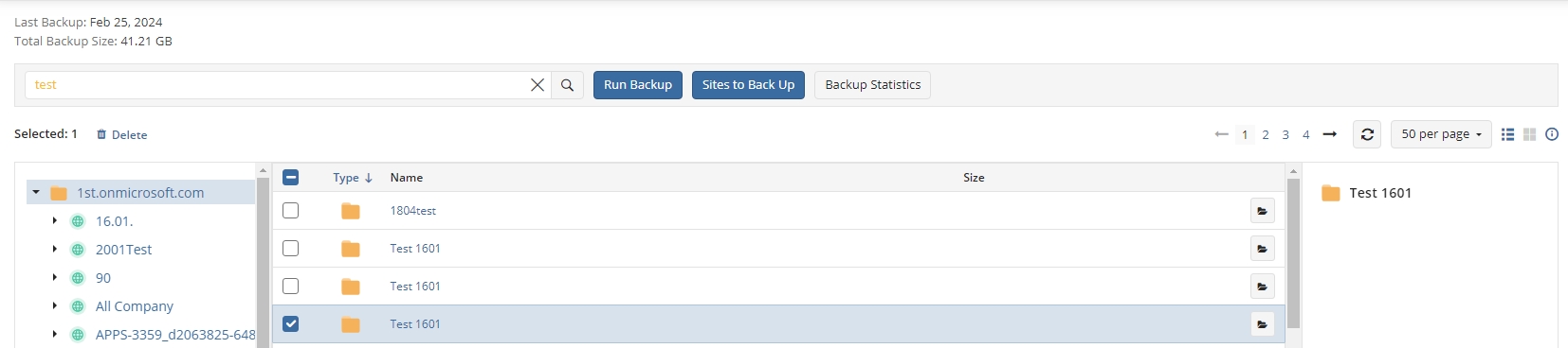 Use search to quickly find required sites or team files to backup. Type search expression and click search icon to proceed.