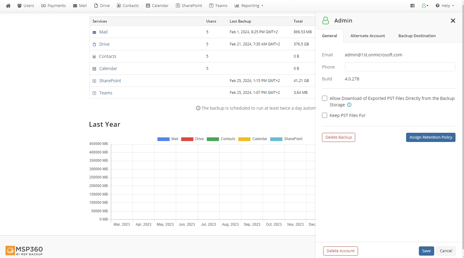 Note that once you delete your account, all associated settings and domain users data will be deleted permanently from the backup project! This cannot be undone