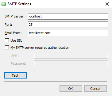 You can also route the email notifications to a custom SMTP server. After specifying the server address, port, sender email and SSL settings, you can send a test email to make sure that the specified settings are valid.