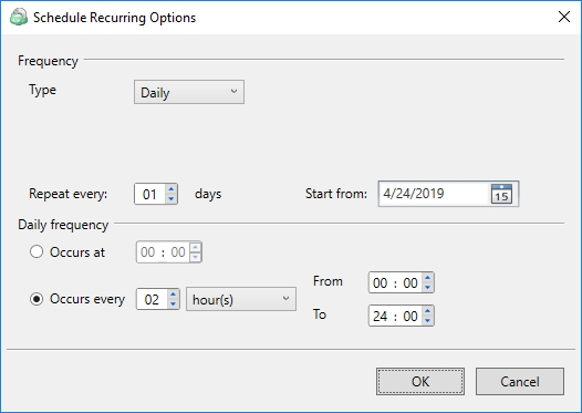 Click Edit schedule next to each selected backup type, and then specify a recurring schedule using the Schedule Recurring Options dialog box that opens.