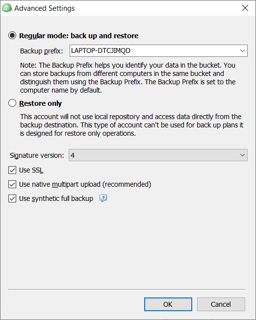As of version 6.3.3 of Backup for Windows, support for synthetic full backup is added to S3-compatible storage providers.