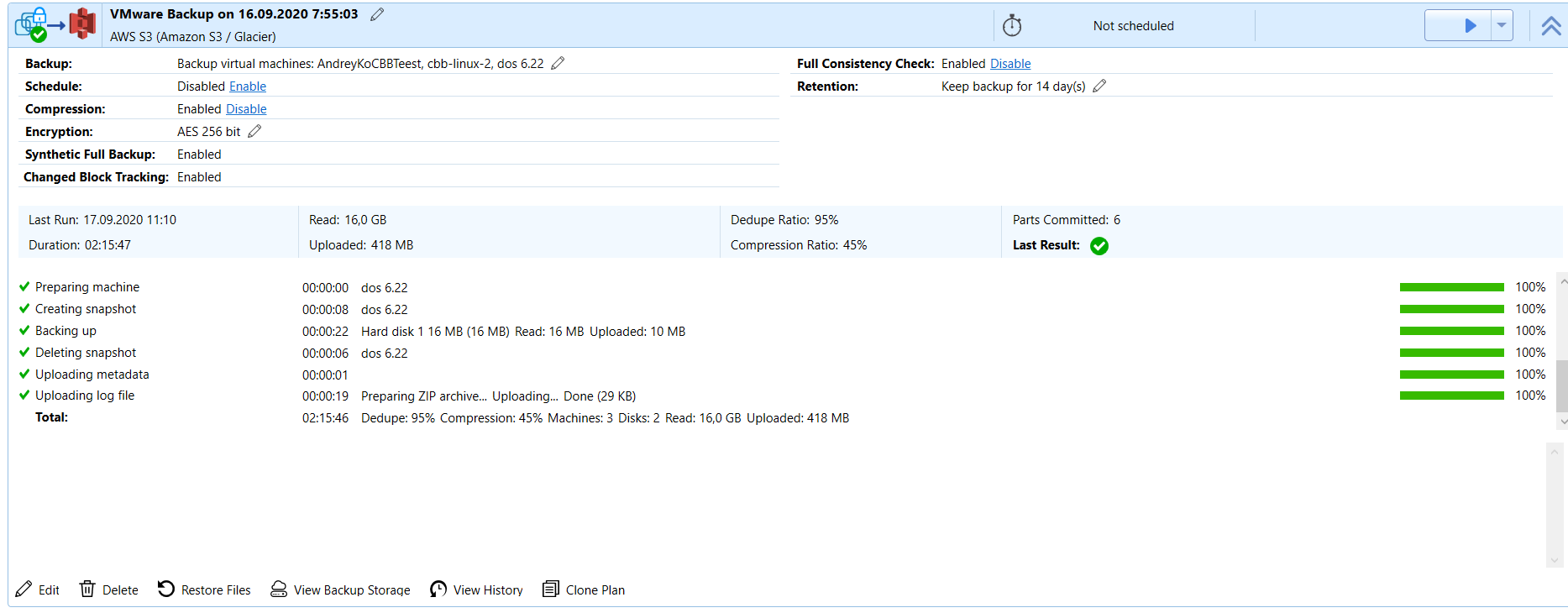 It is highly recommended to perform a test run for the created backup plan to ensure that Backup for Windows properly executes specified scripts