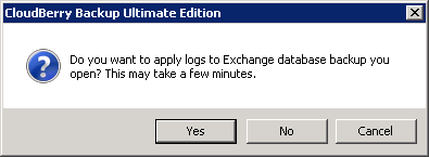 In the dialog box, specify whether you want to apply Exchange Server logs or not.