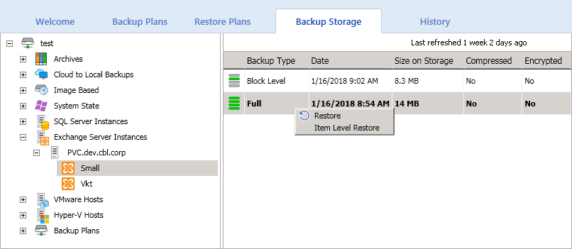 In the Exchange Item Level Restore box, select items to be restored, then click and select Restore to restore the item to a required destination.